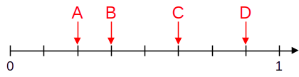 Aufgabe 33: Ziehe den Pfeil am orangen Punkt auf die vom Bruch bestimmte Stelle der Skala.