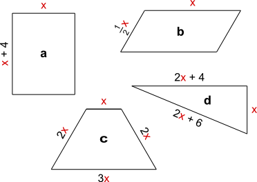 Aufgabe 65: Der Umfang aller 4 Figuren beträgt 36 cm. Wie lang ist die jeweilige Seite x?
