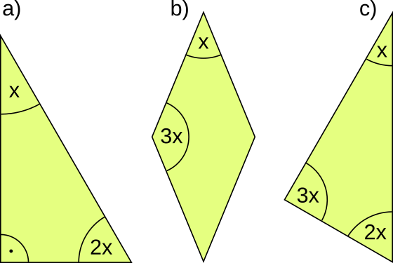 | a) x = ° | b) x = ° | c) x = ° | d) x = ° |