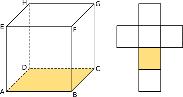 Aufgabe 11: Klick den Buchstaben der Fläche an, die an der angegebenen Position beim animierten Würfel zu sehen ist.