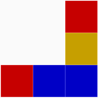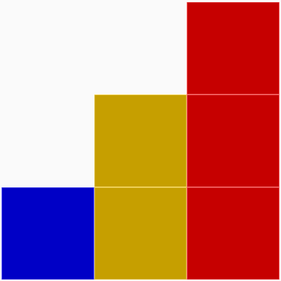 Aufgabe 13: Klicke auf die Kästchen. Verändere dadurch die Farben so, dass die Farben gelb, blau und rot zu sehen sind. Am Würfel gegenüberliegende Kästchen sollen die gleiche Farbe haben.