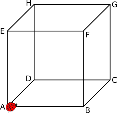 Aufgabe 1: Der Käfer krabbelt von Punkt A aus entlang der Kanten des Würfels.