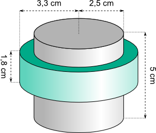 Aufgabe 41: Ein Türstopper besteht aus einem Metallzylinder und einem Gummiring. Trage die ganzzahligen Werte des Volumens der beiden Gegenstände ein.